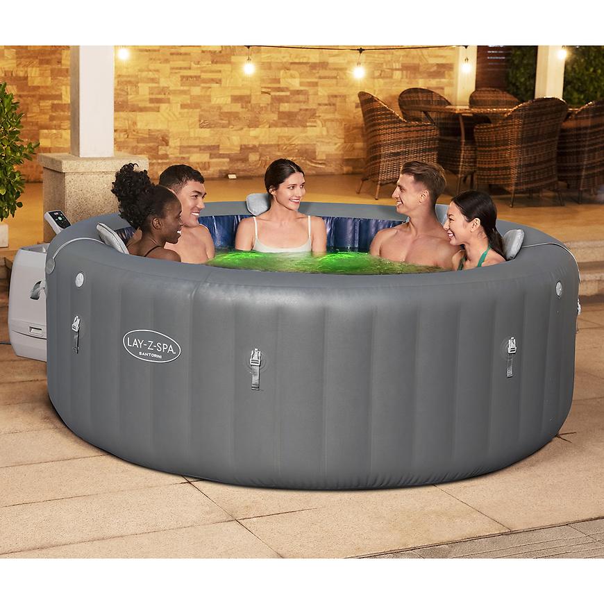 Spa Santorini 6001T wyposażony jest w hydrodynamiczny system masażu, który łączy 10 dysz HydroJet™ oraz 180 dysz pęcherzykowych, oferując nieporównywalny komfort i odprężenie. Maksymalna temperatura wody wynosi 40℃, a podświetlenie LED ColorJet z siedmioma zmieniającymi się kolorami dodaje atmosfery luksusu i spokoju.