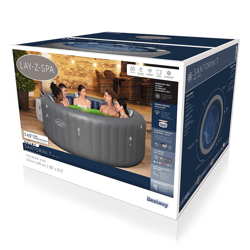 Zaprojektowany z myślą o dużych rodzinach i grupach przyjaciół, basen Spa Santorini 6001T oferuje przestrzeń, która pomieści 5-7 dorosłych osób. Pojemność 1,190 litrów i wymiary 2,16 m x 80 cm sprawiają, że jest idealny do relaksu na świeżym powietrzu, jednocześnie pozostając kompaktowym i łatwym w utrzymaniu.