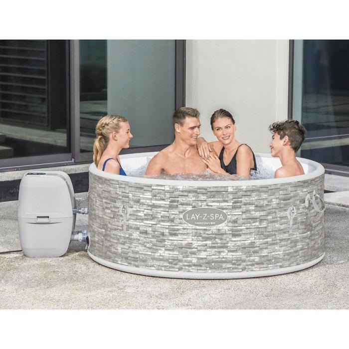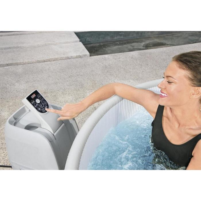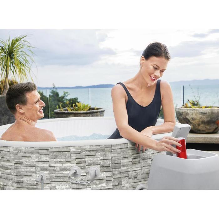 - Cyfrowy panel sterowania i pompa spa ze zintegrowanym systemem filtracji zawiera uchwyty na kubki i jest dostępny z wnętrza spa