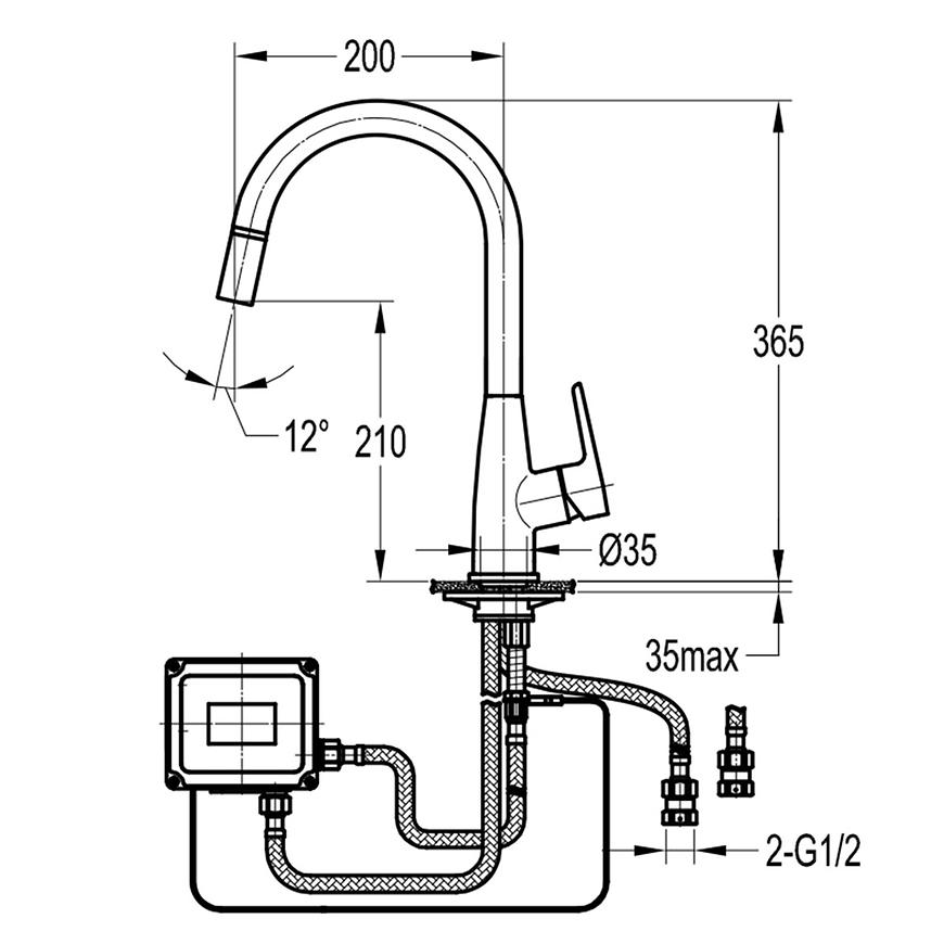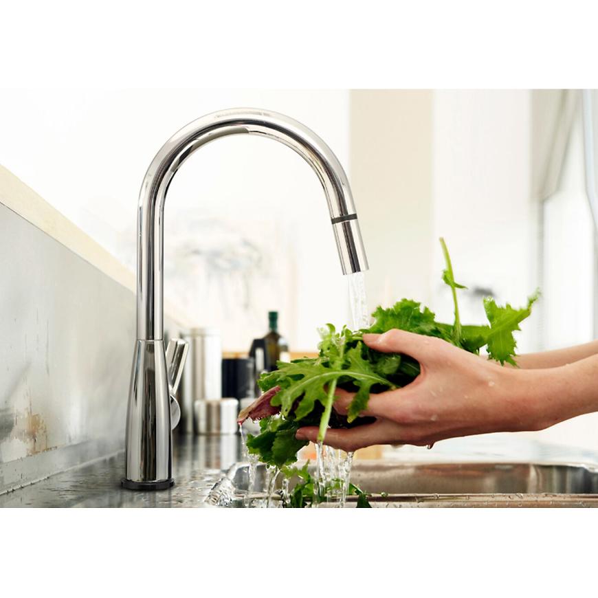 Bateria kuchenna Tauri Touch Me wyposażona jest w ceramiczną głowicę o średnicy 35 mm, umożliwiając precyzyjną regulację temperatury i natężenia strumienia wody. Ruchoma wylewka daje swobodę w kierowaniu strumieniem, co ułatwia wykonywanie różnych czynności w zlewozmywaku.