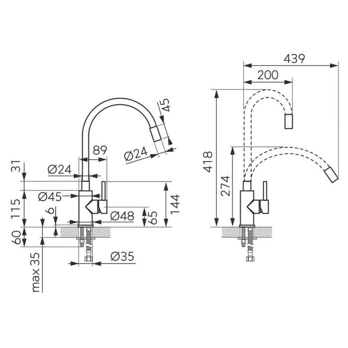 bateria zlewozmywakowa elastyczna