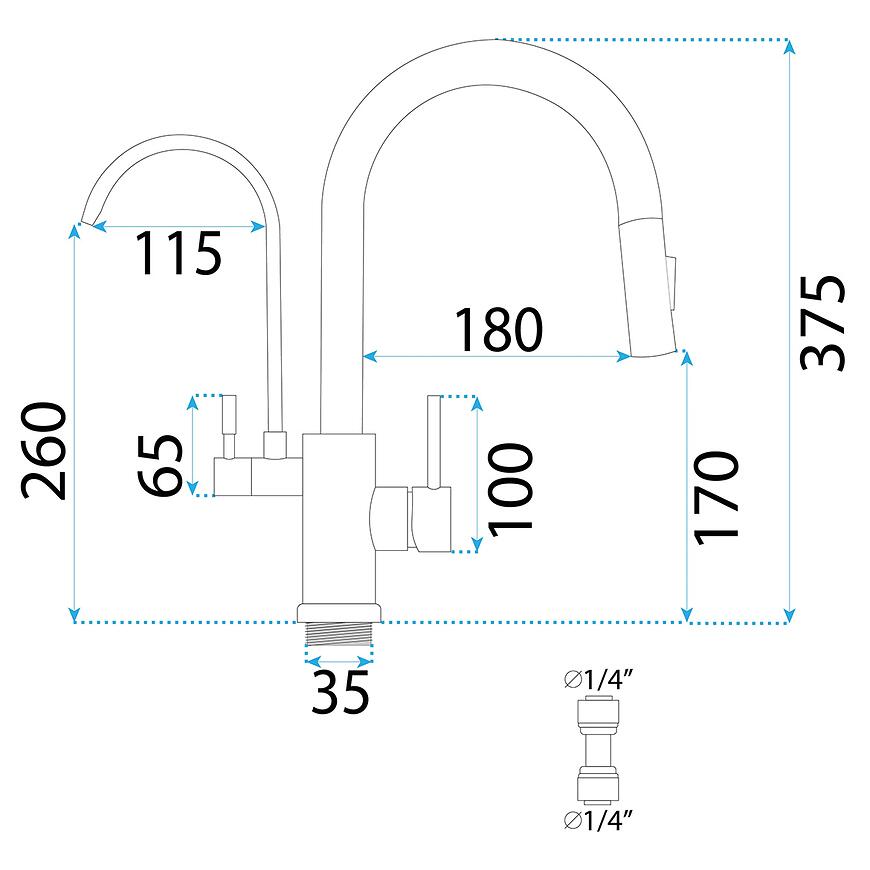 Korpus baterii wykonano z mosiądzu, co gwarantuje trwałość i odporność na korozję. Ceramiczna głowica umożliwia precyzyjną regulację przepływu i temperatury wody. Perlator napowietrza strumień, czyniąc wodę miękką i bardziej oszczędną w użytkowaniu. Bateria łączy elegancję z funkcjonalnością, stając się praktycznym elementem każdej kuchni.