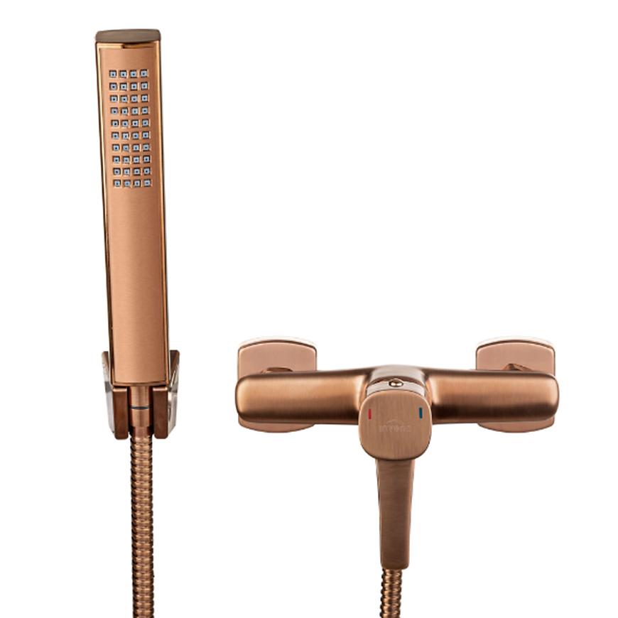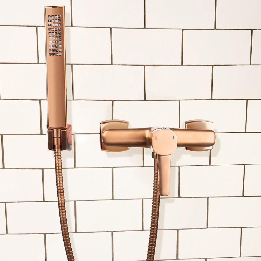 Bateria natryskowa Glamour w efektownym kolorze miedzi, zestawiona z kompletem natryskowym, stanowi kompleksowe rozwiązanie dla strefy prysznicowej. To idealna propozycja dla miłośników minimalistycznego podejścia do wystroju łazienki, charakteryzującego się stylem industrialnym czy loftowym.