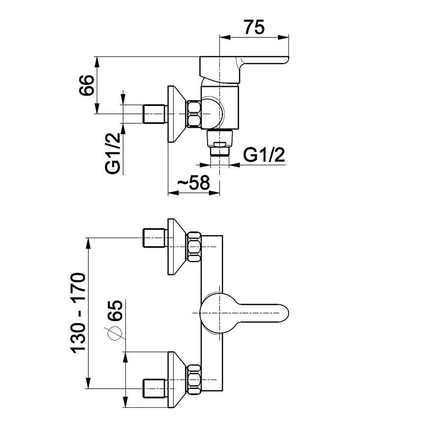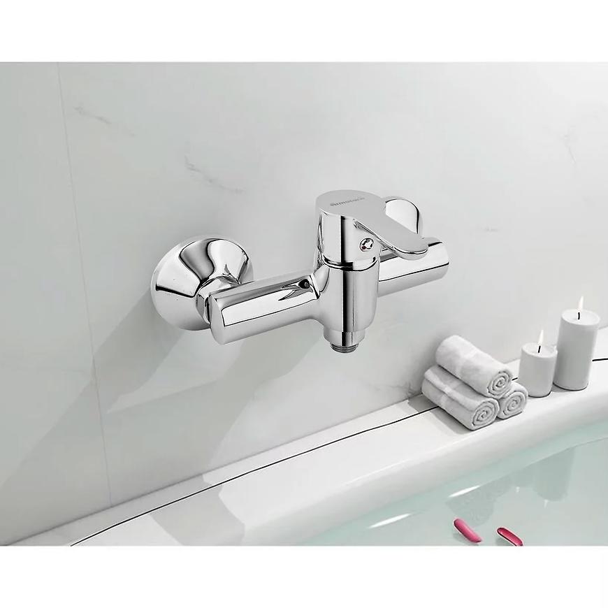 Bateria natryskowa z serii Granat została wyposażona w zaawansowaną głowicę typu R35, co pozwala na płynną i precyzyjną regulację strumienia wody. System montażu dwuotworowego ściennego zapewnia stabilność oraz pewność podczas korzystania z prysznica. Standardowy rozstaw wynoszący 150 mm ułatwia montaż i dopasowanie baterii do większości łazienek.
