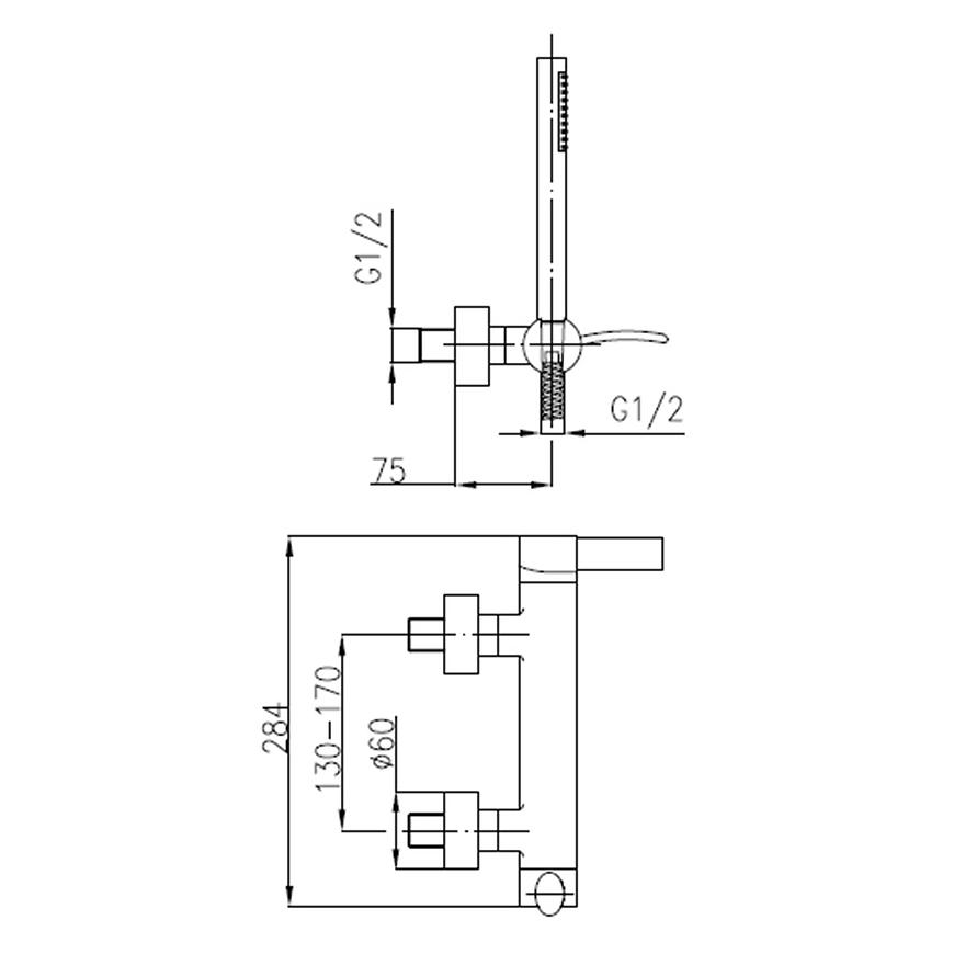 Zastosowanie wysokiej jakości mosiądzu jako materiału wykonania gwarantuje trwałość, solidność i elegancję. Zintegrowany perlator umożliwia oszczędne zużycie wody, zachowując jednocześnie przyjemny i równomierny strumień. Rodzaj ceramicznej głowicy o średnicy 35 mm umożliwia precyzyjną kontrolę temperatury i natężenia wody, zapewniając przyjemne doświadczenie podczas kąpieli. Nie dotyczy wylewki, ponieważ produkt jest baterią natryskową ścienną. System montażu dwuotworowego naściennego i dostarczony w zestawie wyciągany natrysk oraz natrysk 1-funkcyjny, wraz z długością węża wynoszącą 120 cm, zapewniają wygodę i funkcjonalność podczas korzystania z natrysku.