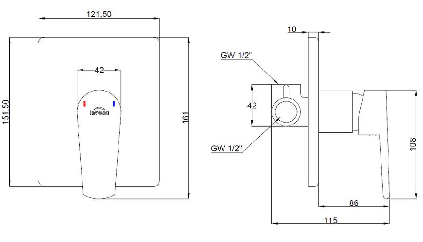 Bateria wykonana w kształcie kwadratowej rozety-nie posiada przełącznika natrysku. Idealnie wkomponuje się w strefę prysznicową.