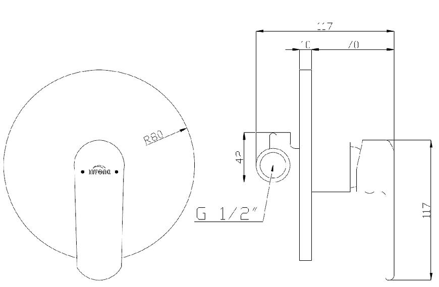 Bateria wykonana w kształcie okrągłej rozety- nie posiada przełącznika natrysku. Idealnie wkomponuje się w strefę prysznicową.