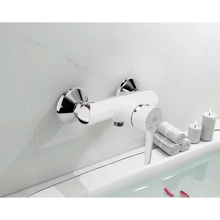 Bateria natryskowa ścienna Angelit w połączeniu kolorów białego i chromu to nie tylko urządzenie, to prawdziwa dekoracja łazienki. Seria Angelit łączy w sobie minimalistyczny design, elegancję i praktyczność, tworząc doskonałe rozwiązanie dla współczesnych przestrzeni kąpielowych.