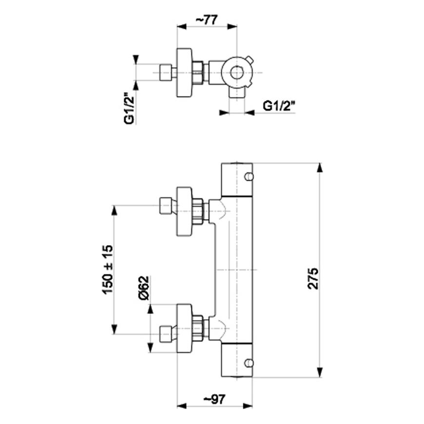 Bateria została wykonana z wytrzymałego mosiądzu, co nie tylko zapewnia trwałość, ale także nadaje estetyczny wygląd. Głowica termostatyczna SEDAL umożliwia precyzyjną kontrolę nad temperaturą wody, co gwarantuje bezpieczne i komfortowe prysznice. Zastosowanie głowicy termostatycznej wyklucza potrzebę perlatora, ponieważ strumień wody jest dostosowywany bezpośrednio przez regulację temperatury. To zapewnia płynny strumień o pożądanej temperaturze.