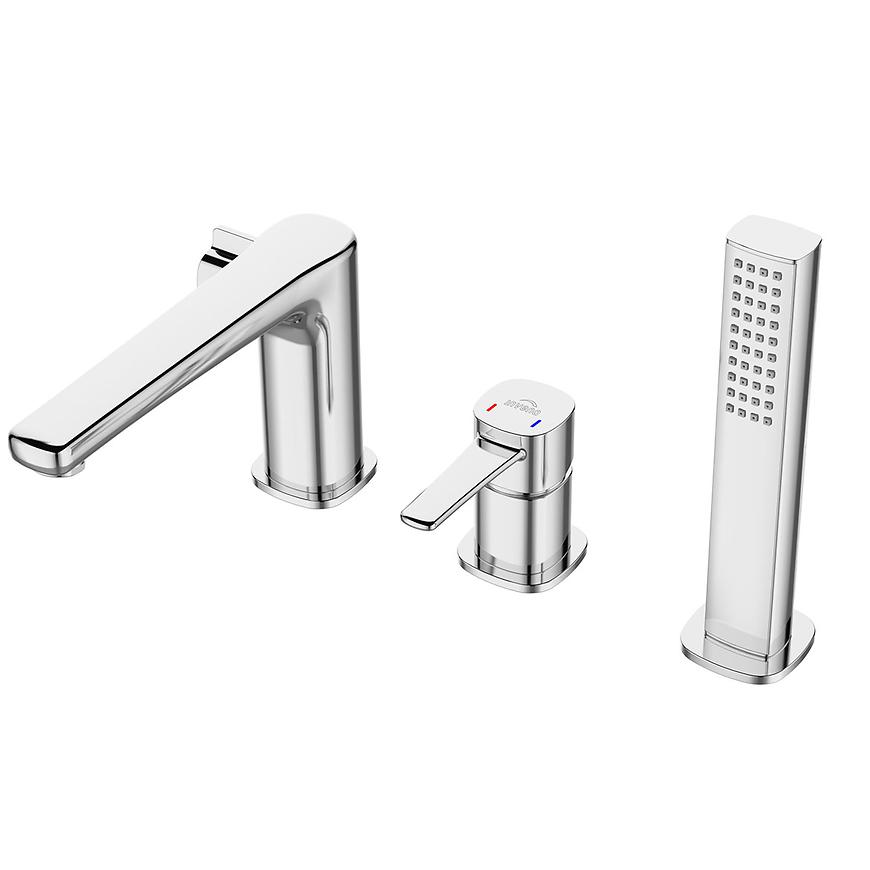 Bateria nawannowa 3-otworowa Trend w kolorze chromu, wykonana z solidnego mosiądzu, to nowoczesny model rozszerzający modną serię armatury marki Invena. Została zaprojektowana z myślą o niewielkich łazienkach.
