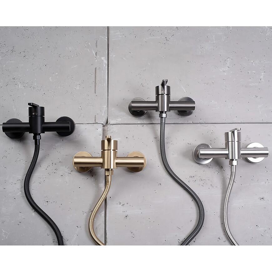 Bateria posiada system montażu dwuotworowy ścienny z rozstawem 150 mm, co zapewnia stabilność i trwałe zamocowanie. Dwuotworowy montaż sprawia, że bateria idealnie przylega do ściany, a złoty szczotkowany kolor harmonijnie komponuje się z armaturą i akcesoriami łazienkowymi, tworząc spójne i luksusowe wnętrze.