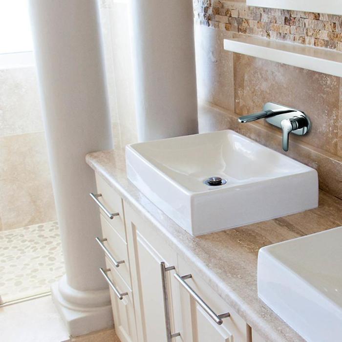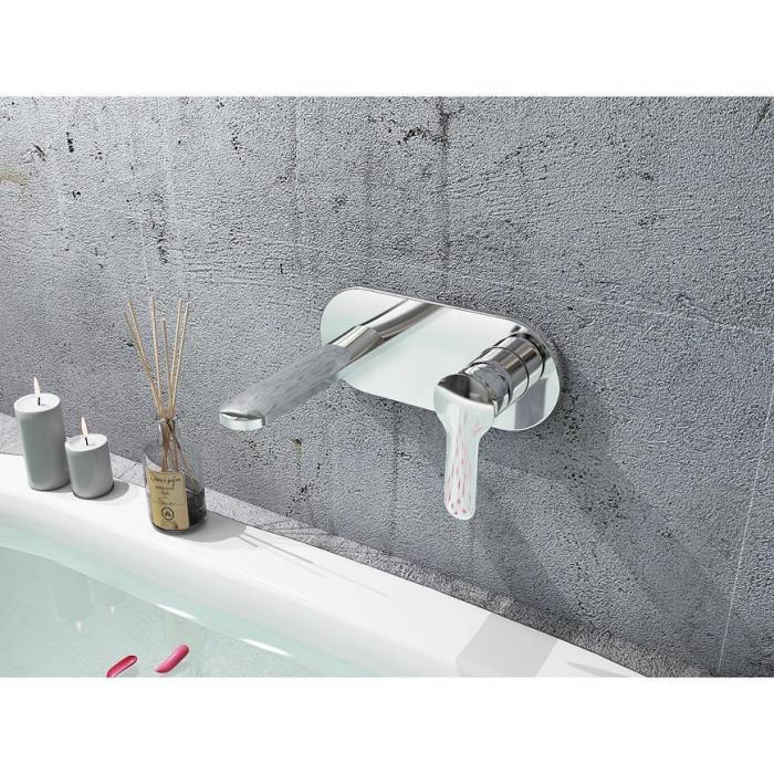 Bateria Verdi to model podtynkowy, co oznacza, że większość elementów instalacyjnych ukryta jest w ścianie. Na zewnątrz widoczna jest jedynie estetyczna płyta z wylewką i uchwytem, co nadaje całości czysty i minimalistyczny wygląd. Taki montaż ułatwia utrzymanie łazienki w czystości, a także pozwala zaoszczędzić miejsce w strefie umywalkowej. Wersja czarna świetnie sprawdzi się w aranżacjach nowoczesnych, loftowych i industrialnych, natomiast chromowana doda blasku klasycznym wnętrzom.