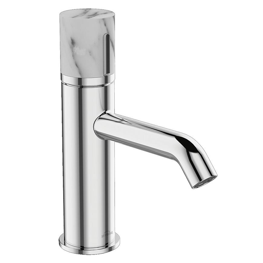 Marmur, jeden z najmodniejszych wzorów we wnętrzarstwie, łączy się tutaj z chromem, tworząc lekką i jednocześnie ponadczasową propozycję do łazienki. Stała wylewka i ceramiczna głowica o średnicy 25 mm gwarantują płynną regulację strumienia wody, zapewniając użytkownikowi komfort korzystania.