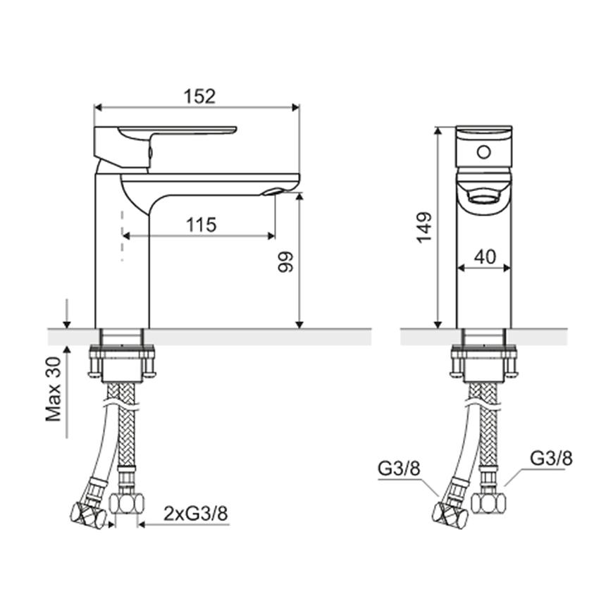 Bateria Glad wyposażona jest w perlator, co sprawia, że strumień wody jest delikatny i jednocześnie oszczędza wodę. Rodzaj wylewki to stała, co dodatkowo podkreśla minimalistyczny i nowoczesny design baterii.