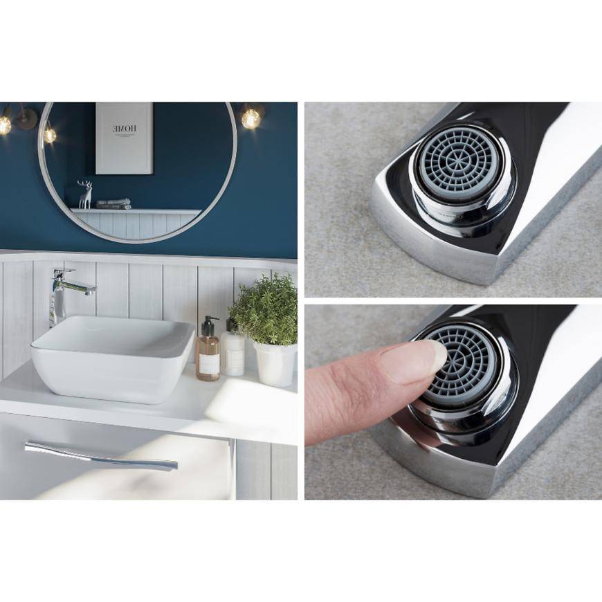 Perlator to kolejny atut tego produktu, gwarantujący równomierny strumień wody o oszczędnej ilości. Rodzaj ceramicznej głowicy 35mm pozwala na płynną regulację temperatury i natężenia wody, zapewniając pełną kontrolę nad użytkowaniem. Bateria umywalkowa Mokait została wyposażona w stałą wylewkę, co ułatwia korzystanie z niej i umożliwia precyzyjne ustawienie strumienia wody. Jej wysoki design sprawia, że idealnie komponuje się z umywalkami o podwyższonych krawędziach, dodając elegancji przestrzeni. Montaż jednootworowy stojący to wygodne i funkcjonalne rozwiązanie, które umożliwia szybki dostęp do wody. W zestawie znajdują się również wężyki zasilające, dzięki którym instalacja staje się jeszcze prostsza i bardziej komfortowa.