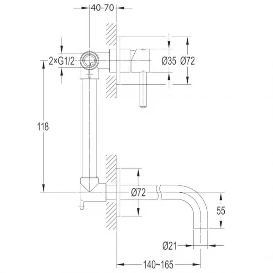 System podtynkowego montażu to doskonałe rozwiązanie dla osób preferujących minimalistyczny styl i prostotę. Elementy baterii, takie jak wylewka i rozetka o średnicy 7,2 cm, są widoczne na powierzchni, natomiast reszta konstrukcji jest ukryta w ścianie, co nadaje łazience schludny i nowoczesny wygląd. Minimalna głębokość zabudowy wynosząca 4,5 cm umożliwia montaż nawet w cieńszych ściankach, a jednocześnie gwarantuje stabilność całej instalacji.