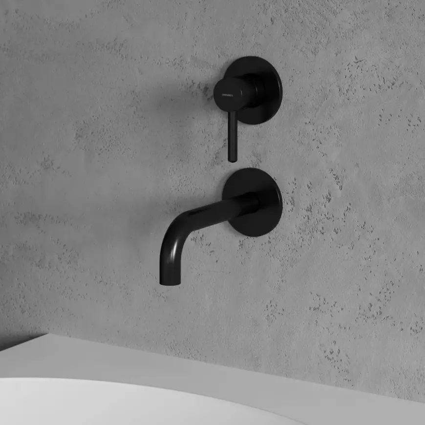 Bateria umywalkowa podtynkowa Y w czarnym, matowym wykończeniu to idealna propozycja dla osób ceniących nowoczesne rozwiązania aranżacyjne. Głęboki odcień czerni dodaje wnętrzu wyrazistości, podkreślając luksusowy charakter łazienki. Bateria harmonijnie komponuje się z modnymi umywalkami nablatowymi i płytkami o różnorodnej fakturze, nadając łazience elegancji i nowoczesnego stylu.