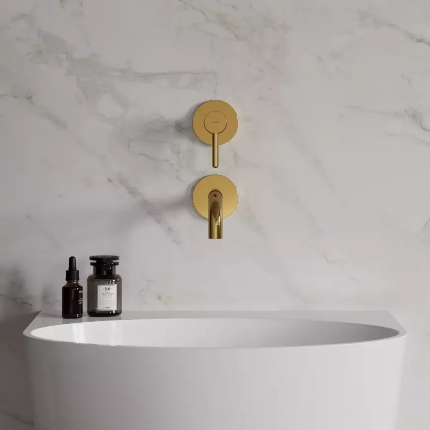 Bateria umywalkowa podtynkowa to nowoczesne i eleganckie rozwiązanie, które pozwala na osiągnięcie minimalistycznego wyglądu w łazience. Bateria podtynkowa została wykonana z mosiądzu, co gwarantuje trwałość, odporność na korozję i estetyczny wygląd. Mosiądz to materiał wysokiej jakości, który zachowuje swoje właściwości przez wiele lat, co sprawia, że bateria jest nie tylko funkcjonalna, ale także solidna.
