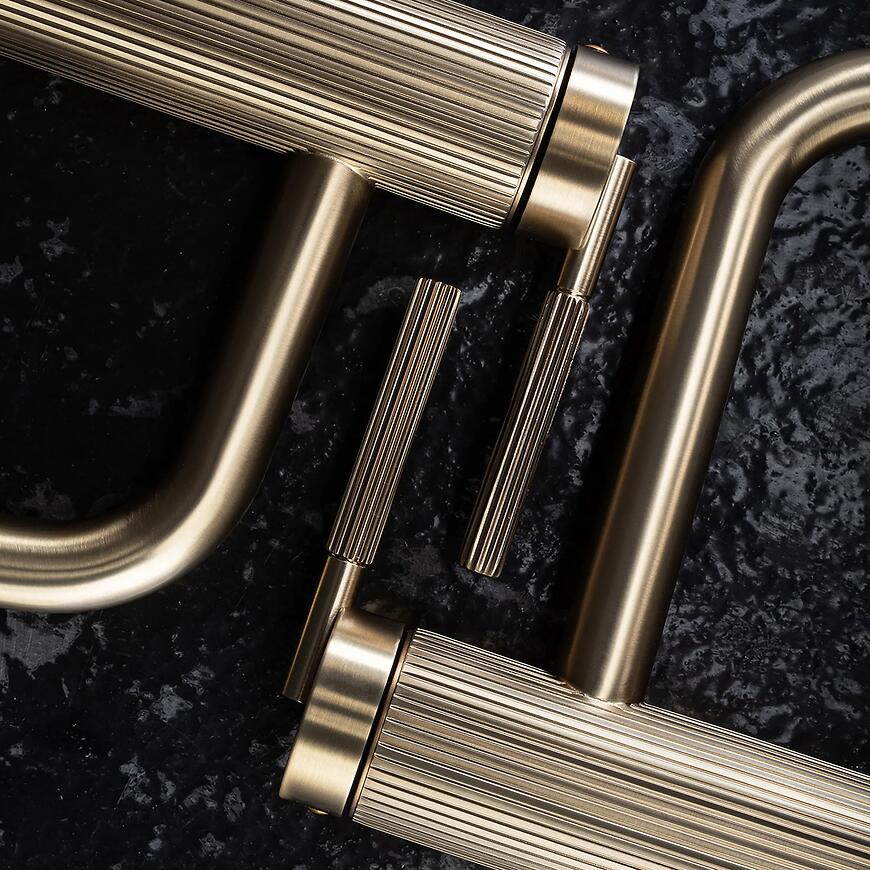 Bateria umywalkowa złota szczotkowana czarny przecierany jako trwałe i designerskie rozwiązanie