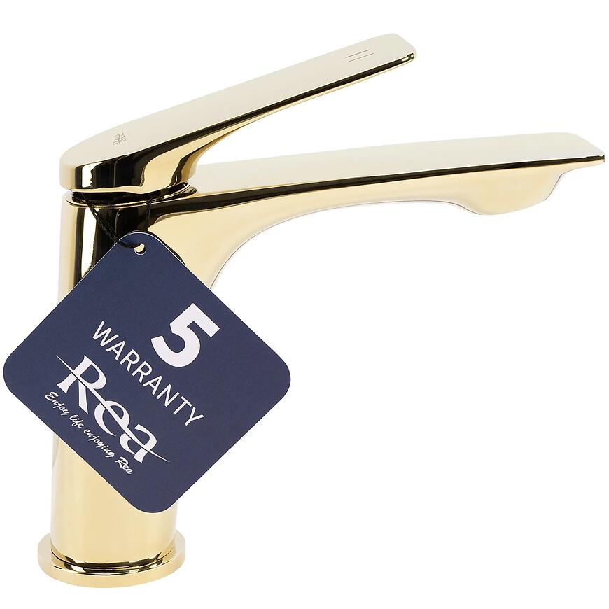 Bateria umywalkowa Rea Avalon w kolorze złotym to elegancka propozycja do wnętrz premium. Ciepły odcień złota idealnie podkreśli aranżacje glamour, modern classic oraz nowoczesne luksusowe łazienki. Korpus wykonany jest z mosiądzu, co gwarantuje trwałość i odporność na korozję.