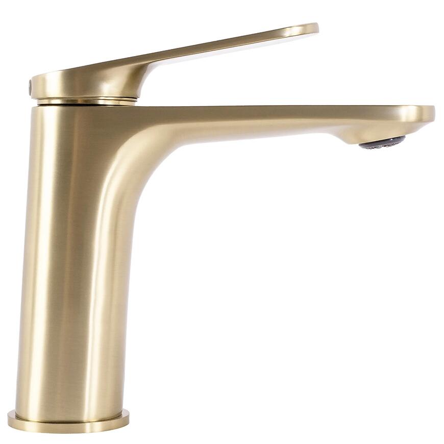 Bateria umywalkowa złota szczotkowana jako trwałe i designerskie rozwiązanie