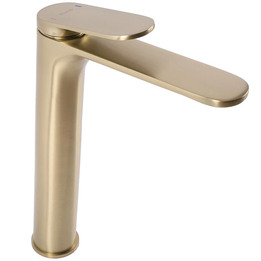 Bateria umywalkowa wysoka złota szczotkowana jako trwałe i designerskie rozwiązanie