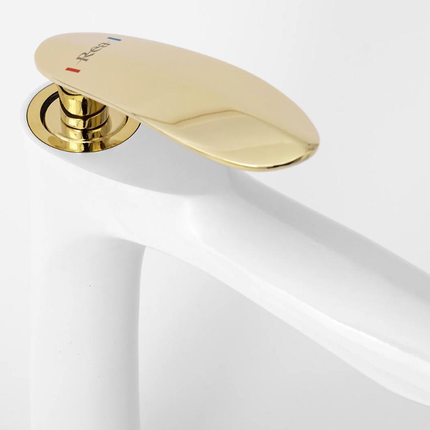 Bateria to jeden z podstawowych elementów wyposażenia łazienki. Bateria umywalkowa stojąca Rea ORBIT wykonana w kolorze biało- złotym jest praktyczna i elegancka. Przypadnie do gustu każdemu kto lubi nowoczesne i estetyczne rozwiązania. Będzie pełnić nie tylko funkcję praktyczną, ale będzie również będzie gustownym dodatkiem w łazience. Wykonana z wysokiej jakości materiałów- z pewnością będzie odpowiednio spełniać swoje funkcje.