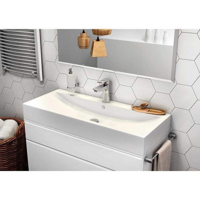 Bateria umywalkowa stojąca Algeo square to propozycja w wyborze armatury łazienkowej. Jest niezwykle praktyczna i z pewnością ułatwi użytkowanie. Całość została wykonana z mosiądzu. System montażu jest jednootworowy stojący. Bateria wykonana jest z najwyższej jakości materiałów.