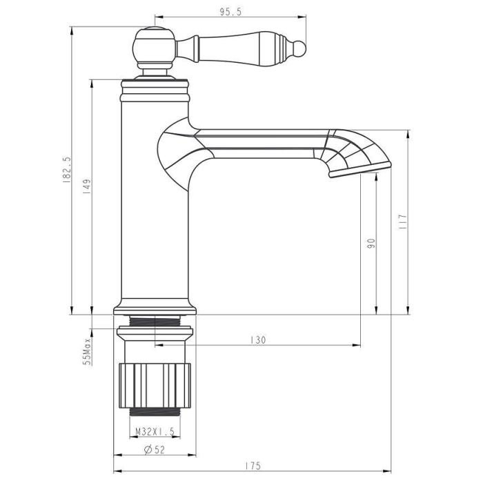Matowe czarne wykończenie ułatwia utrzymanie baterii w czystości i zachowanie eleganckiego wyglądu przez długie lata. Solidna konstrukcja z mosiądzu zapewnia niezawodność, czyniąc baterię Retro czarną praktycznym i stylowym elementem każdej łazienki.