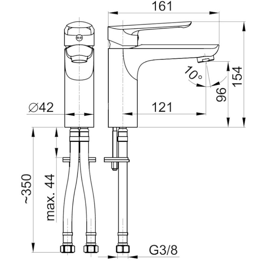 Bateria umywalkowa stojąca Tanzanit to produkt jednootworowy, co ułatwia montaż oraz utrzymanie w czystości. W zestawie znajdują się również wężyki zasilające o długości 45 cm, co zapewnia elastyczność podczas instalacji.
