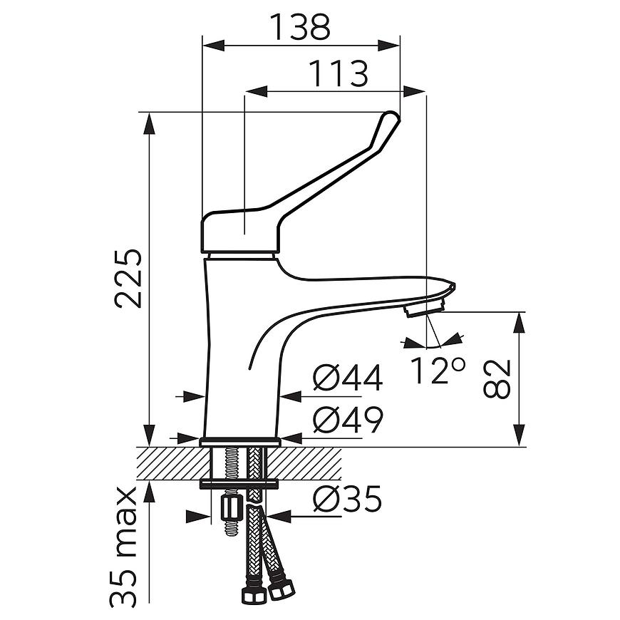 Grupa akustyczna II gwarantuje cichą pracę baterii, co tworzy spokojną atmosferę podczas codziennych rytuałów higienicznych. Wykonana z trwałego mosiądzu, bateria jest solidna i wytrzymała. Perlator M24x1 umożliwia oszczędność wody bez kompromisów w kwestii strumienia. Ceramiczna głowica i stała wylewka to zapewnienie płynnej regulacji przepływu wody i wygodnej obsługi. System montażu jednootworowego oraz dołączone w zestawie wężyki zasilające o długości 35 cm sprawiają, że instalacja jest prosta i pewna.