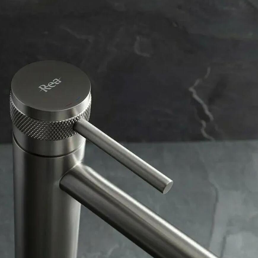Bateria umywalkowa wysoka REA Lungo Grip tytan to produkt dla osób, które tworzą łazienkę przemyślaną nie tylko pod względem użytkowym, ale i estetycznym. Kolor tytan to jeden z najmocniejszych trendów w aranżacjach łazienkowych premium. Jest bardziej wysmakowany niż typowy chrom i bardziej elegancki niż czerń. Tytan wyróżnia się subtelną metalicznością i świetnie wygląda w połączeniu z betonem, drewnem, kamieniem naturalnym oraz ceramiką matową.