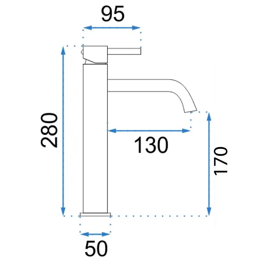 Ten model to bateria umywalkowa wysoka przeznaczona do umywalek nablatowych. Jej wysokość daje realny komfort użytkowania — szczególnie przy wyższych miskach, przy których standardowa bateria jest zbyt niska. Dzięki odpowiedniej wysokości korzystanie ze strefy umywalki jest wygodne, bez rozchlapywania wody i bez zbyt małej przestrzeni pod wylewką. Montaż jednootworowy stojący stanowi bardzo praktyczne rozwiązanie — instalator nie musi kombinować z dodatkowymi otworami ani adapterami.