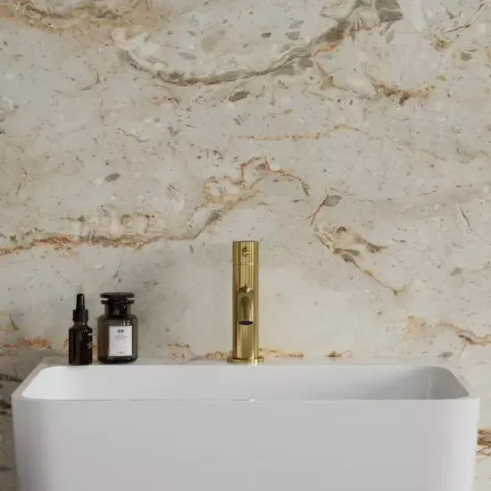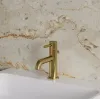 Bateria umywalkowa Y w złotym szczotkowanym wykończeniu to propozycja dla osób, które pragną wprowadzić do swojej łazienki odrobinę luksusu i elegancji. Wykonana z wysokiej jakości mosiądzu, bateria ta jest nie tylko piękna, ale również wyjątkowo trwała. Dzięki zastosowaniu mosiądzu, produkt jest odporny na korozję i uszkodzenia, co gwarantuje jego długowieczność. Złoty kolor w szczotkowanym wykończeniu nadaje wnętrzu wyjątkowego charakteru i doskonale komponuje się z różnymi stylami aranżacji, od klasycznego po nowoczesny.
