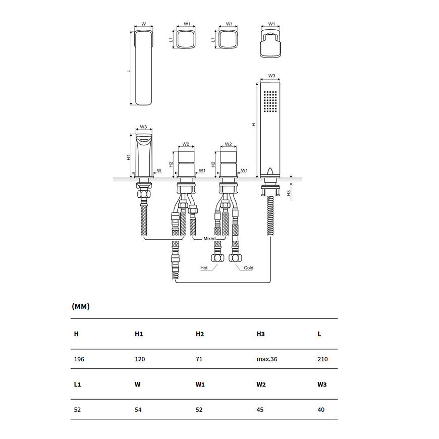 bateria wannowa 4-otworowa