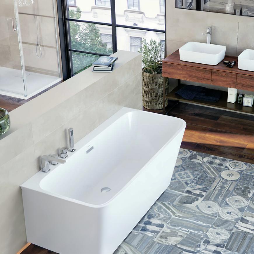 Bateria wannowa Keria została zaprojektowana z myślą o różnorodności montażu. Dzięki systemowi nawannowemu, można ją zamontować zarówno na rancie wanny, jak i na płytkach o grubości do 40 mm. Mechaniczny przełącznik umożliwia wygodne sterowanie przepływem wody.