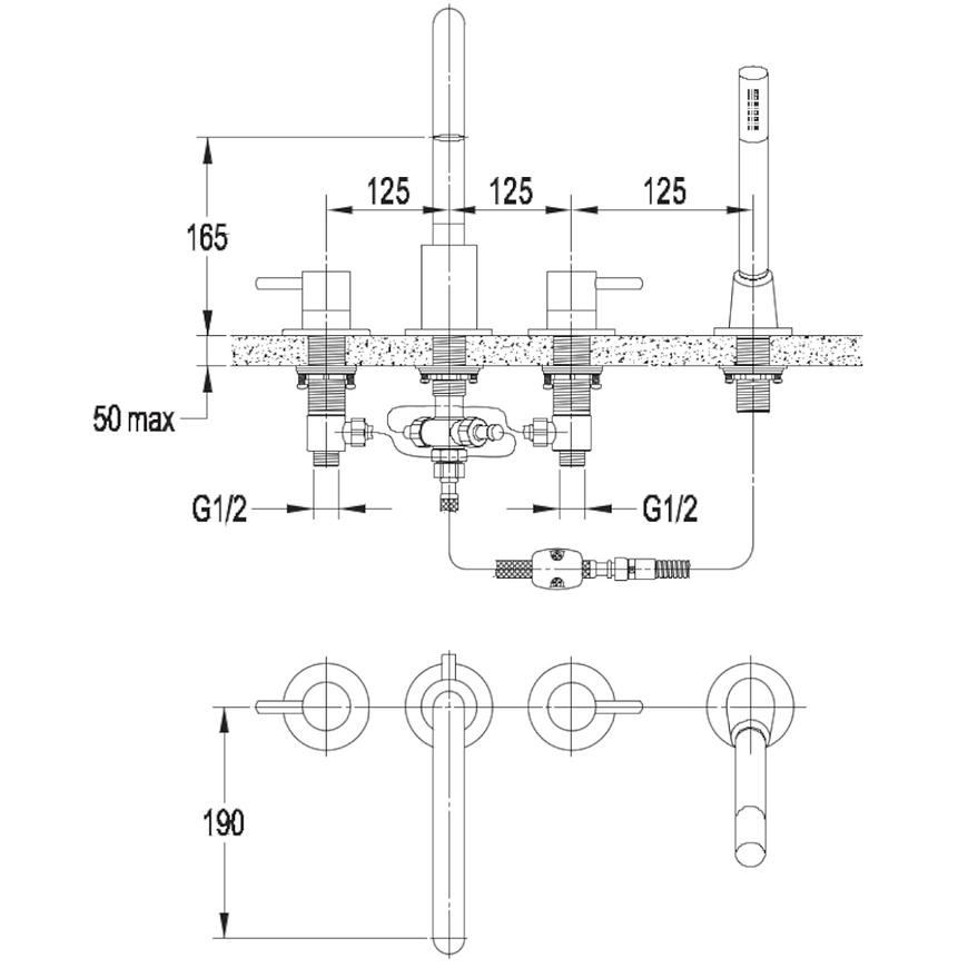 Jednym z kluczowych atutów tej baterii jest jej 4-otworowy system montażu stojącego. Oznacza to, że poszczególne elementy — wylewka, głowica, rączka prysznicowa i uchwyt — są montowane osobno na brzegu wanny, co zapewnia większą swobodę aranżacyjną i estetyczny wygląd. Wylewka o zasięgu 19 cm i wysokości wypływu wody 16,5 cm gwarantuje wygodne napełnianie wanny wodą, a obrotowa konstrukcja pozwala na precyzyjne kierowanie strumienia.