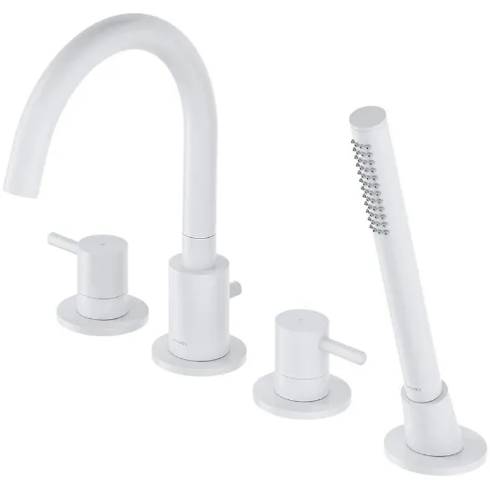 Inspiracje Odkryj baterię wannową 4-otworową Y w eleganckim białym macie. Zapewnia stylowy wygląd i komfort użytkowania, idealną do nowoczesnych łazienek. Trwała i funkcjonalna, łatwa w montażu.