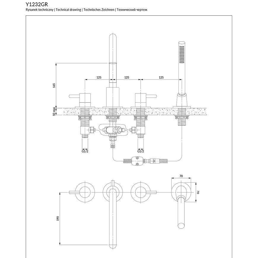 Bateria wannowa 4-otworowa Y w kolorze grafit to eleganckie i funkcjonalne rozwiązanie do Twojej łazienki. Wykonana z wysokiej jakości materiałów, zapewnia trwałość i długotrwałe użytkowanie. Nowoczesny design i łatwa instalacja sprawiają, że bateria doskonale komponuje się z różnymi stylami wnętrz. Idealna do komfortowego korzystania z wanny.