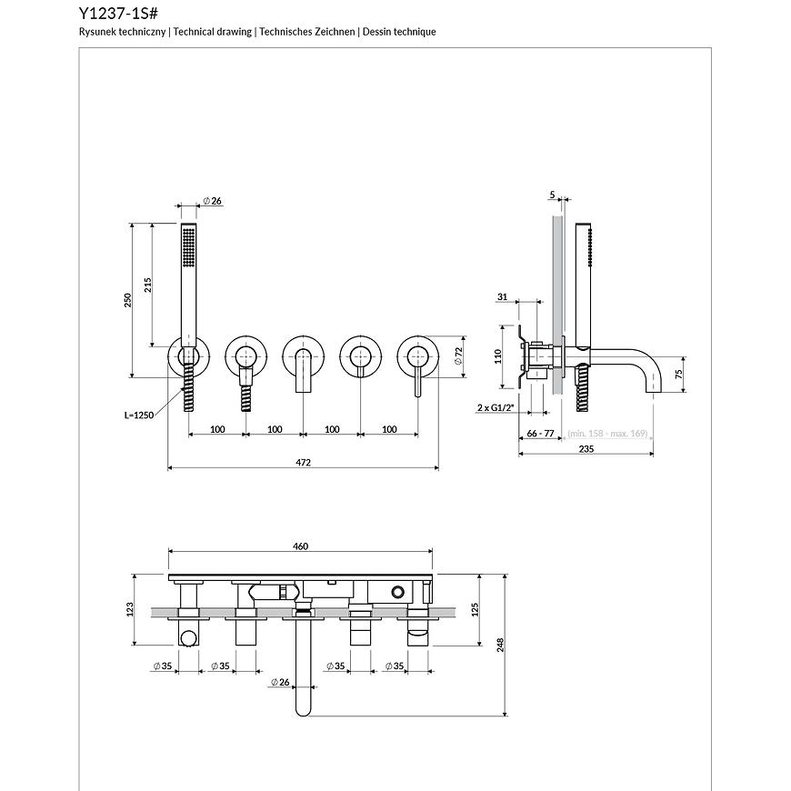Bateria wannowa 5-otworowa podtynkowa Y z mosiądzu szczotkowanego – eleganckie i funkcjonalne rozwiązanie do Twojej łazienki. Trwała, odporna na korozję, zapewnia komfort użytkowania i nowoczesny wygląd. Idealna do precyzyjnego montażu i długotrwałej eksploatacji.