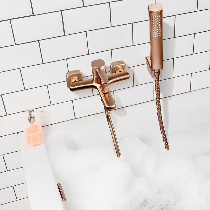 Bateria wannowa Glamour w efektownym kolorze miedzi, w komplecie z zestawem natryskowym, to kompleksowe rozwiązanie dla miłośników relaksujących kąpieli. Zestaw doskonale współgra z wystrojem łazienki utrzymanej w stylu industrialnym, dodając elegancji i funkcjonalności przestrzeni.