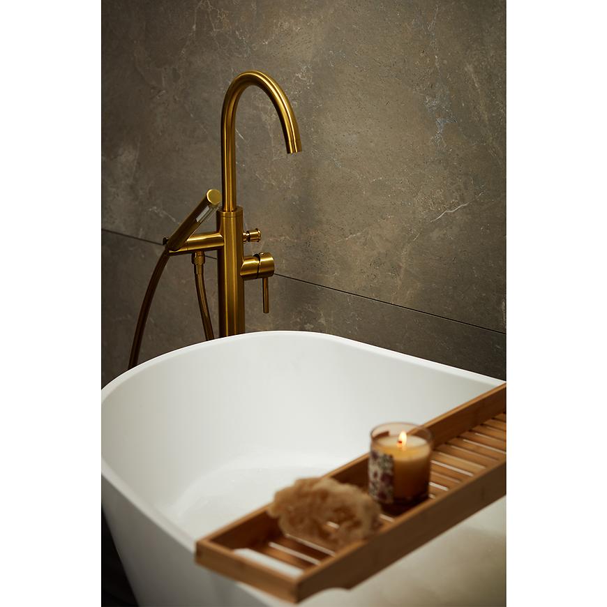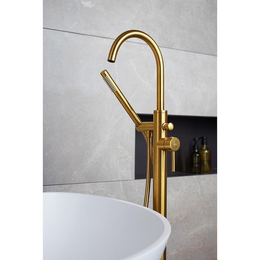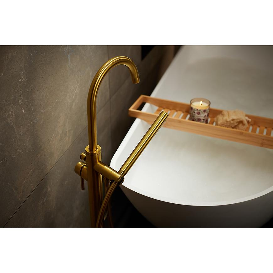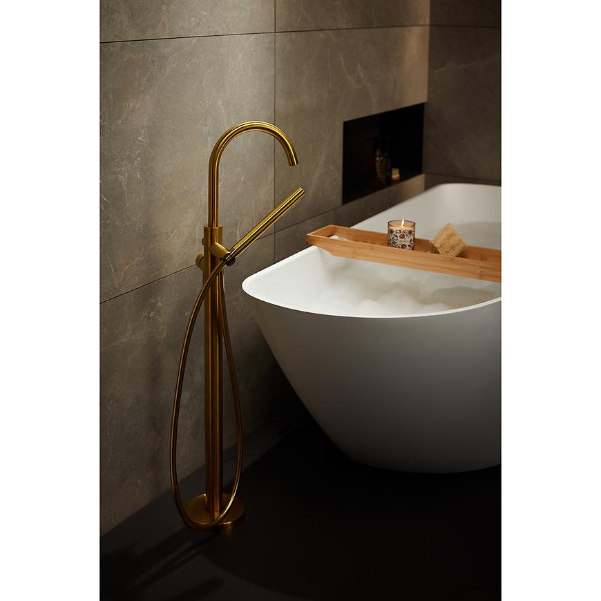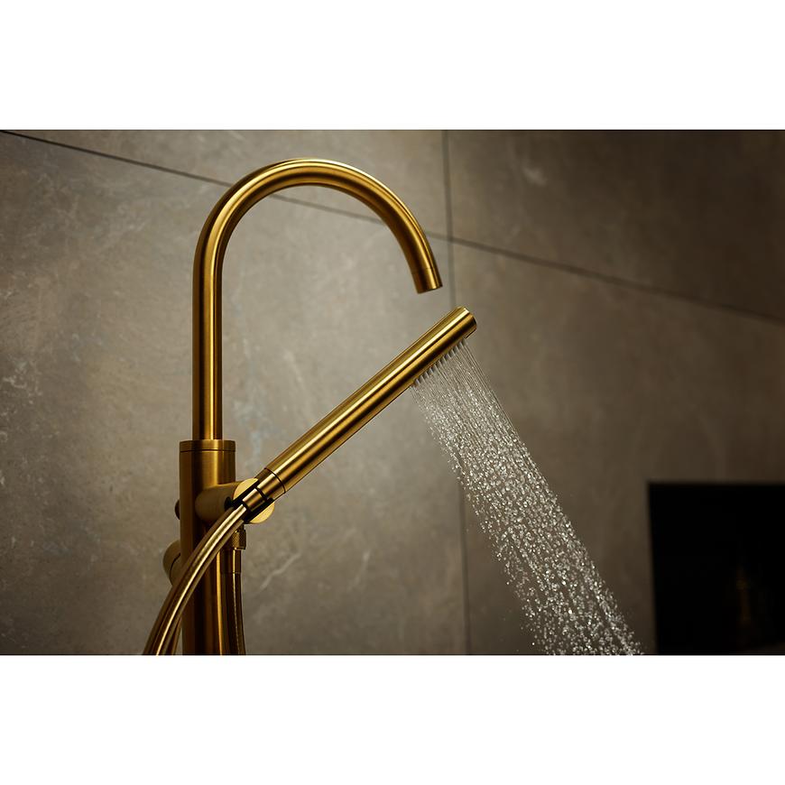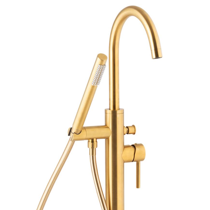 Bateria wannowa wolnostojąca Moza Gold nada Twojej łazience luksusowy i stylowy charakter. To niezwykłe urządzenie, które pozwoli Ci cieszyć się wyjątkowymi chwilami relaksu w wannie. Odcień złotego szczotkowanego koloru nadaje tej baterii niezwykłą elegancję i prestiż. Wykonana z trwałego mosiądzu, zapewnia solidność i wytrzymałość na długie lata użytkowania.