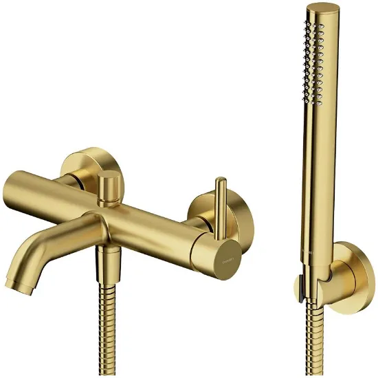 Inspiracje Odkryj baterię wannową z zestawem prysznicowym Y w eleganckim wykończeniu mosiądzu szczotkowanego. Połączenie stylu i funkcjonalności, które doda klasy Twojej łazience i zapewni komfort podczas kąpieli. Solidna konstrukcja i nowoczesny design.