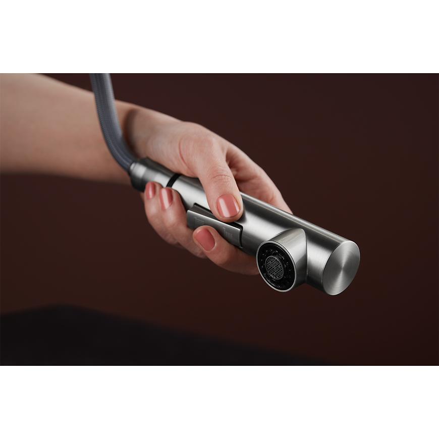Zaawansowana technologia sprawia, że bateria ta mieści się w Grupie akustycznej II, zapewniając cichą pracę, która nie zakłóci spokoju Twojej kuchni. Jej nowoczesny wygląd w kolorze inox doskonale komponuje się z różnymi stylami wnętrz, dodając im szczyptę nowoczesności. Materiał wykonania – wysokiej jakości mosiądz – gwarantuje trwałość i długotrwałą estetykę. Perlator to dodatkowy atut, który pozwala na oszczędność wody bez utraty komfortu podczas korzystania z baterii. Rodzaj głowicy ceramicznej o średnicy 35 mm zapewnia płynną regulację strumienia wody oraz długą żywotność produktu. Najważniejszą cechą tej baterii jest jednak obrotowa, wyciągana wylewka. Dzięki tej funkcji zyskujesz większą swobodę w operowaniu wodą, umożliwiając z łatwością mycie dużych naczyń czy warzyw. Montaż baterii jest niezwykle prosty, dzięki systemowi jednootworowego stojącego, a dodatkowe wężyki zasilające stanowią wygodne rozwiązanie.