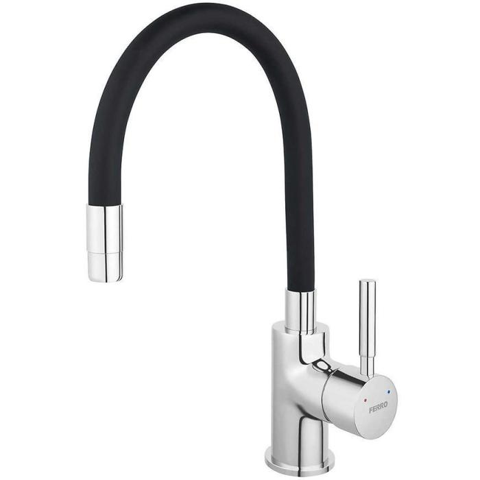 Bateria zlewozmywakowa ZUMBA w kolorze czarnym, została wykonana z mosiądzu. Posiada elastyczną wylewkę.
