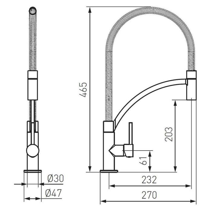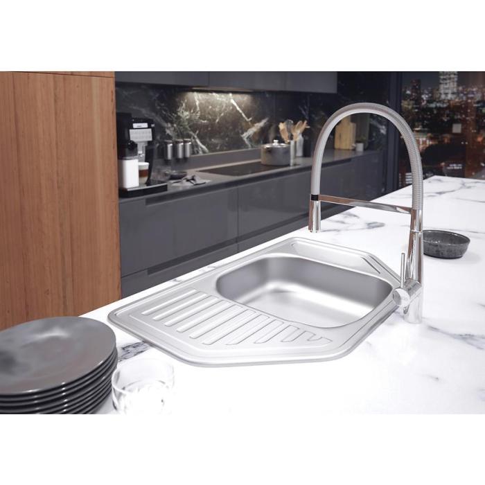 Bateria zlewozmywakowa MAESTRO w kolorze chromu, została wykonana z mosiądzu. Posiada elastyczną wylewkę.