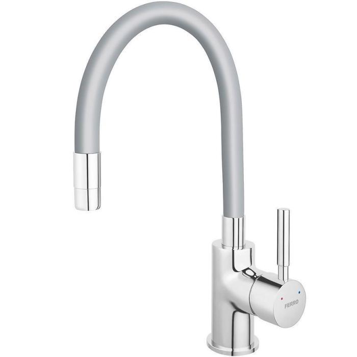 Bateria zlewozmywakowa ZUMBA w kolorze szarym, została wykonana z mosiądzu. Posiada elastyczną wylewkę.