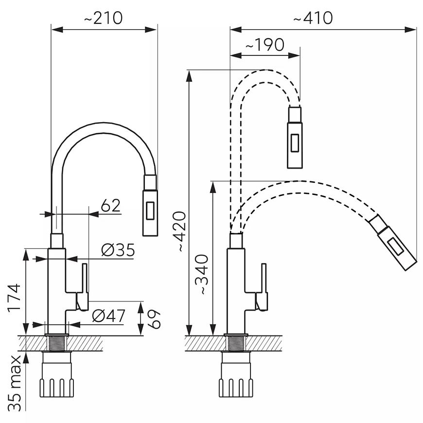 System montażu jednootworowego oraz dołączone w zestawie wężyki zasilające o długości 35 cm sprawiają, że instalacja jest szybka i pewna.