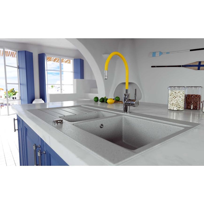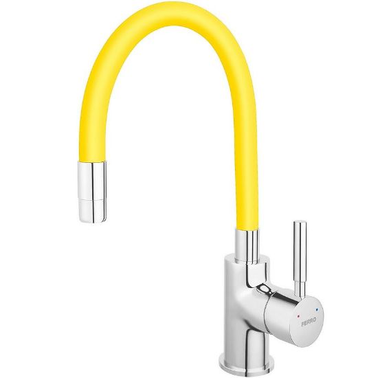 Bateria zlewozmywakowa elastyczna żółta Zumba wykonana z trwałego mosiądzu, nie tylko prezentuje się elegancko, ale również gwarantuje długotrwałą użyteczność. Zastosowany perlator o rozmiarze M22x1 zapewnia płynny przepływ wody, a ceramiczna głowica pozwala na precyzyjne sterowanie temperaturą i natężeniem strumienia.