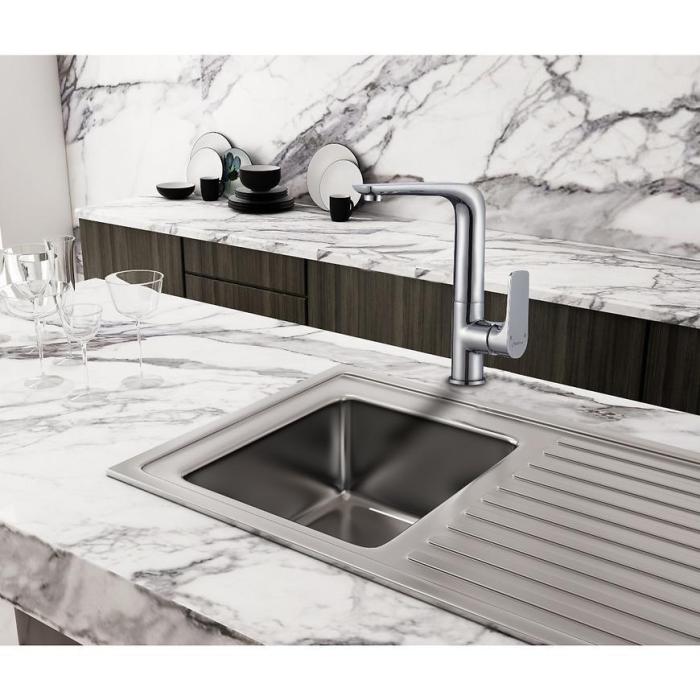 Bateria to jeden z podstawowych elementów wyposażenia kuchni. Bateria zlewozmywakowa Gemini wykonana w kolorze chromu jest praktyczna i funkcjonalna. Przypadnie do gustu każdemu kto lubi gotować i spędzać czas w kuchni. Na uwagę zasługuje fakt, że posiada obrotową wylewkę. Uniwersalny kształt i odpowiednie funkcje sprawiają, że będzie to odpowiedni model do większości kuchni.
